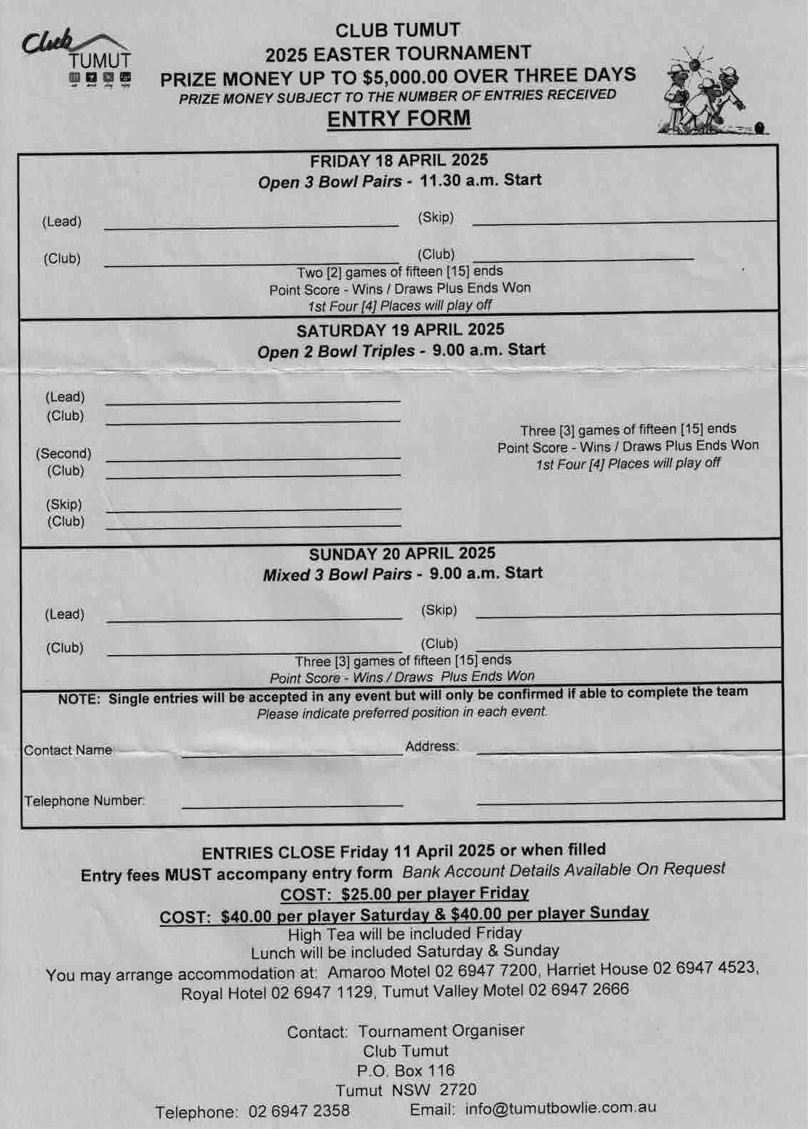 Friday 2 games x 15 ends 3 bowl pairs